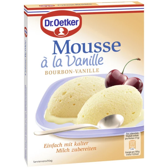 Für besonders schöne Momente: Genießen Sie Mousse à la Vanille mit dem außerordentlich zarten Geschmack. Diese Dessert-Spezialität ist sehr einfach zubereitet und beste Zutaten garantieren höchste Qualität. Die Mousse lässt sich vielseitig variieren und servieren, zum Beispiel mit fruchtigen Obststückchen.