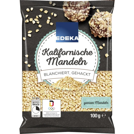 - aus ganzen, süßen kalifornischen Mandeln grob gehackt